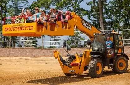 Diggerland主題樂(lè)園目前的游玩項(xiàng)目有駕駛JCB兩頭忙,乘坐地面巴士(用JCB伸縮臂叉裝車(chē)540-140改裝,有15個(gè)座位),乘坐空中專(zhuān)列(用JCB伸縮臂叉裝車(chē)540-180改裝,可升高至18米)等特色項(xiàng)目。